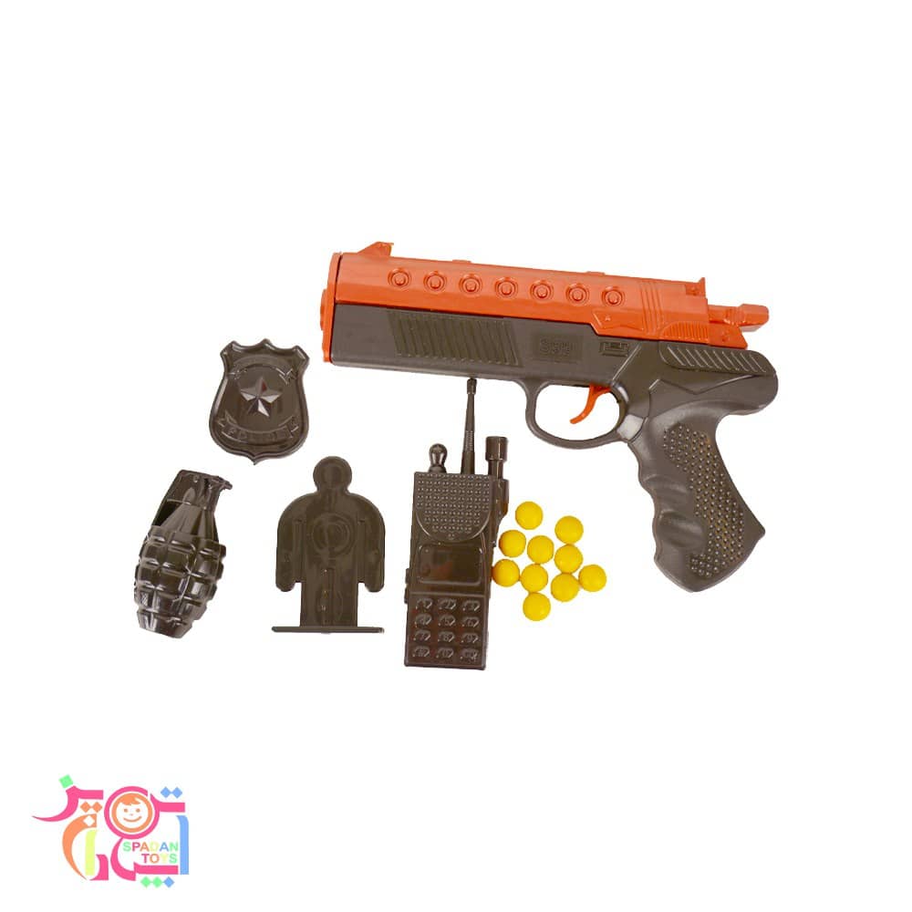 یکی از ست های تفنگ اسباب بازی اسپادان تویز ، تک کلت با لوازمی همچون نارنجک، بیسیم ، سیبل نشانه گیری و نشان پلیس است که به صورت رو کارتی بسته بندی شده است